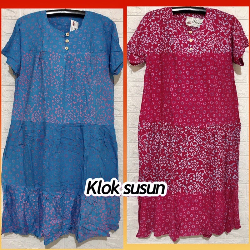 Daster batik Solo Sheraton lengan pendek, model susun. Bahan tebal, model cantik dengan warna yang menarik dan mempesona.