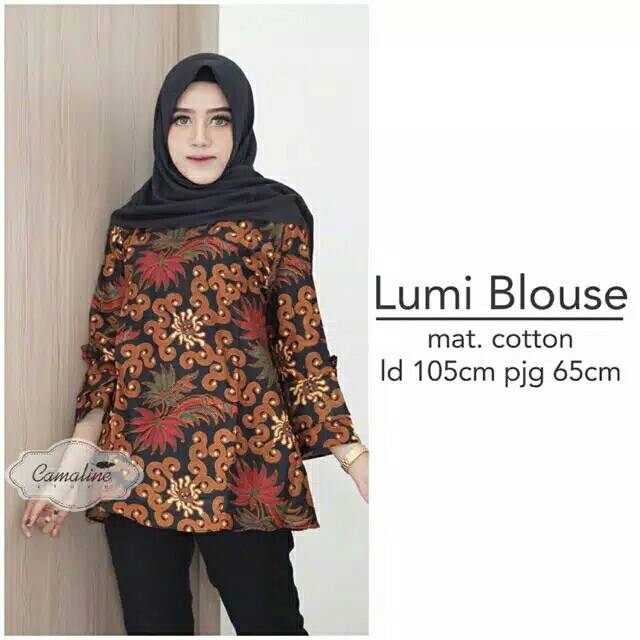 Name: Lumi Blouse Centini Batik Sogan Warna Atasan Lengan Trompet Puff Motif