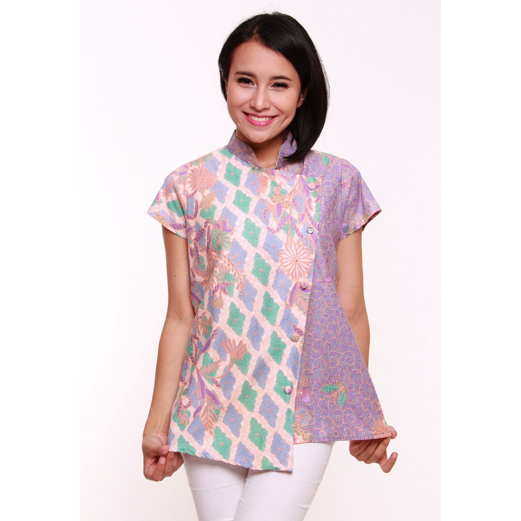 Name: Batik Repose27 Batik Wanita Blouse Kombinasi Asimetris Shanghai Kerja Modern Pastel Ungu